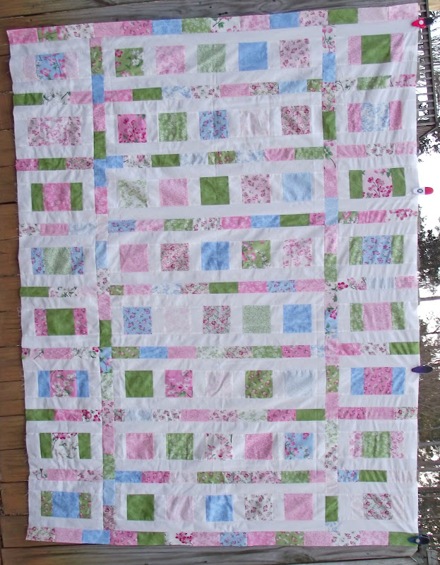 This is done with Dogwood Trail by Moda and Kona bleached white. Now on to the back...
